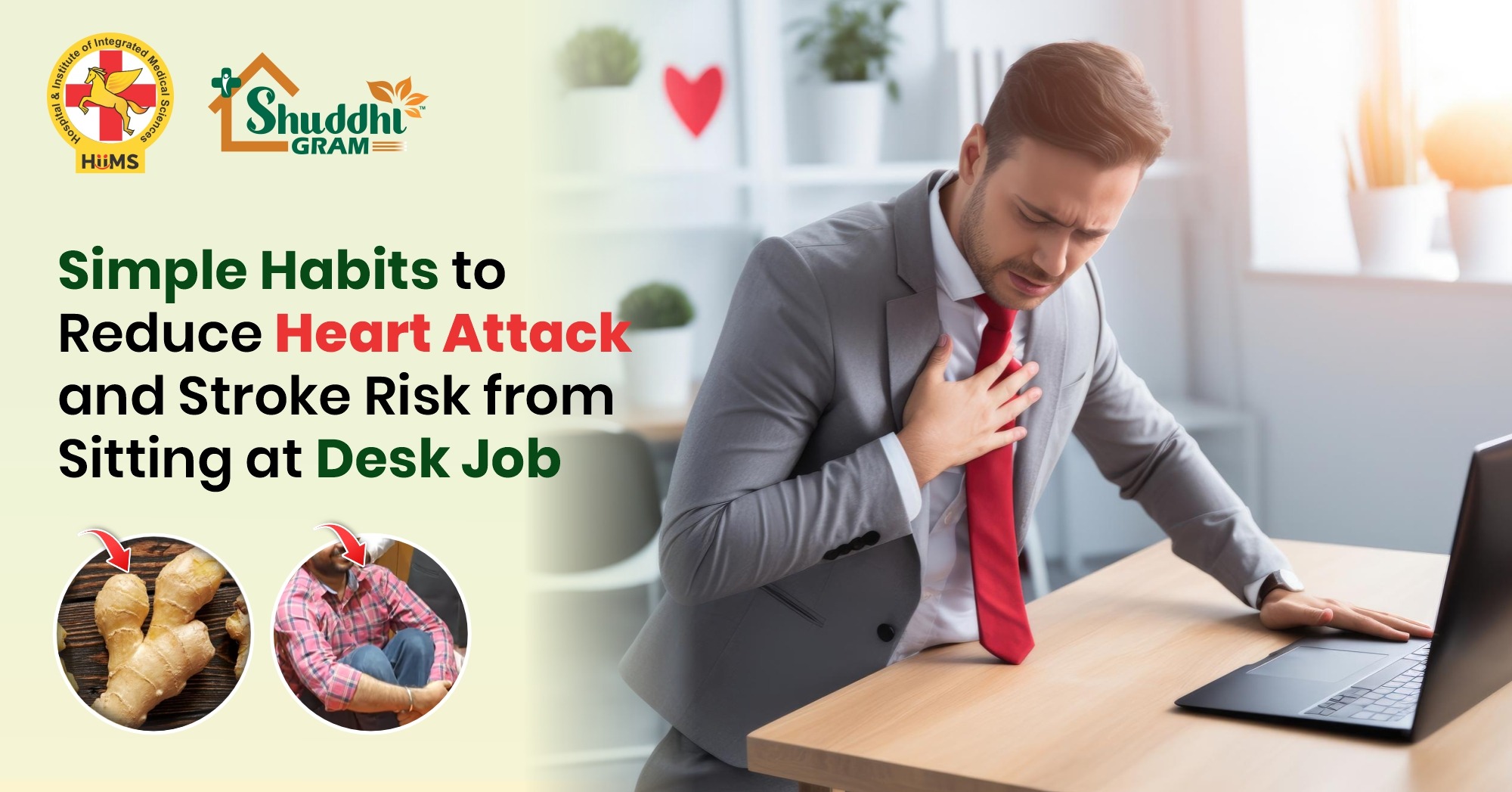The cardiovascular risk in office workers is becoming an issue today. Spending long hours while sitting, without exercise, and always being stressed by work quietly put boundaries on the heart and blood vessels. But prevention begins with awareness is helpful for better health. In the case of a desk job, taking small and regular steps will help keep your heart healthy. You could take a walk during a break, stretch at your desk, do deep breaths, and eat mindfully. Sedentary workers should develop a routine of exercise (brisk walking, yoga, cycling, etc.) to not only enhance circulation, but also reduce blood pressure and cholesterol. Keep in mind that your heart will be so happy when you move and stand up one step at a time to be healthy. If you need more information regarding heart risk, then visit HIIMS (Jeena Sikho) Shuddhigram.